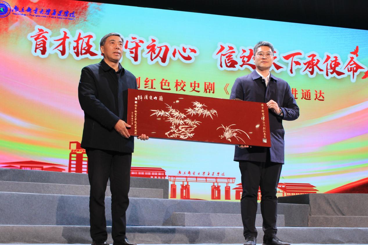 600cc全讯白菜自助注册院长王国平代表学院向本次演出的2023白菜网总站大全《赤子》剧社赠送牌匾,表达了对他们的感谢之情。